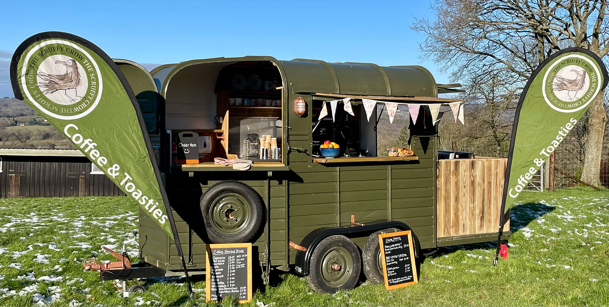 Incredible coffee, fantastic cheese toasties, and more-all served from our beautifully converted horsebox.