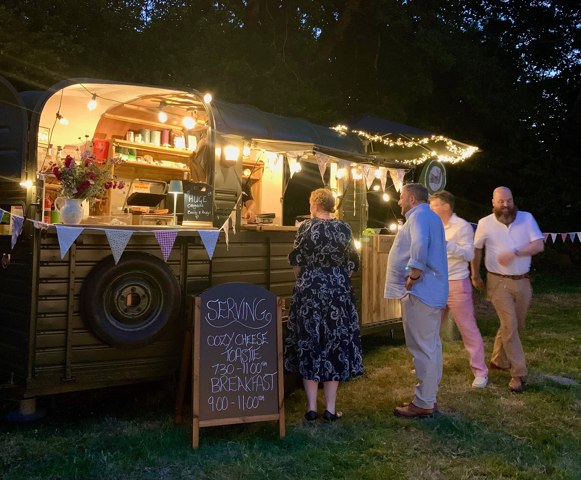 Our cheese toasties are always popular and go down a storm, whatever the event. They provide a delicious vegetarian alternative to the usual street food offerings and are a perfect way to satisfy those munchies whatever the time of day. Together with our delicious coffee, bacon baps, savoury pastries and range of cakes and drinks we can cater to all tastes. All efficiently and cheerfully served from our beautiful horse box.